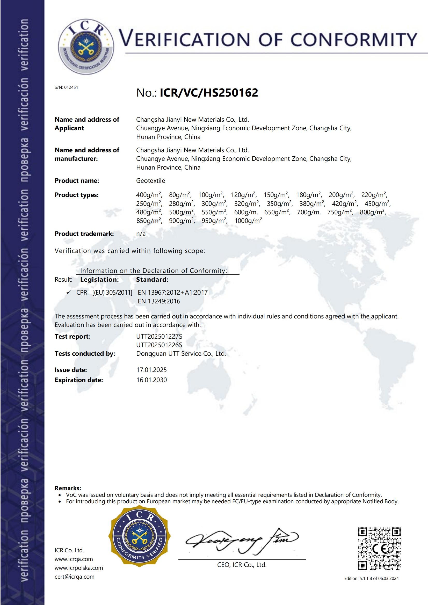 Jianyiè il più grande produttore di Long firber geotextile in Hunan, siamo una delle unità membri di HNWPA.