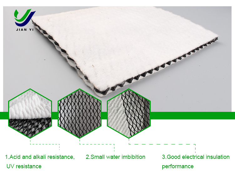 Il filtro geotessile è un tessuto non tessuto perforato con un ago, selezionato per la sua superiorità di resistenza alla trazione e le sue proprietà di ritenzione del suolo.,garantire un legame forte e permanente tra il geotessile e il nucleo del geonet che non si delaminerà.è un investimento a lungo termine nella salute strutturale e nella sostenibilità del vostro progetto.